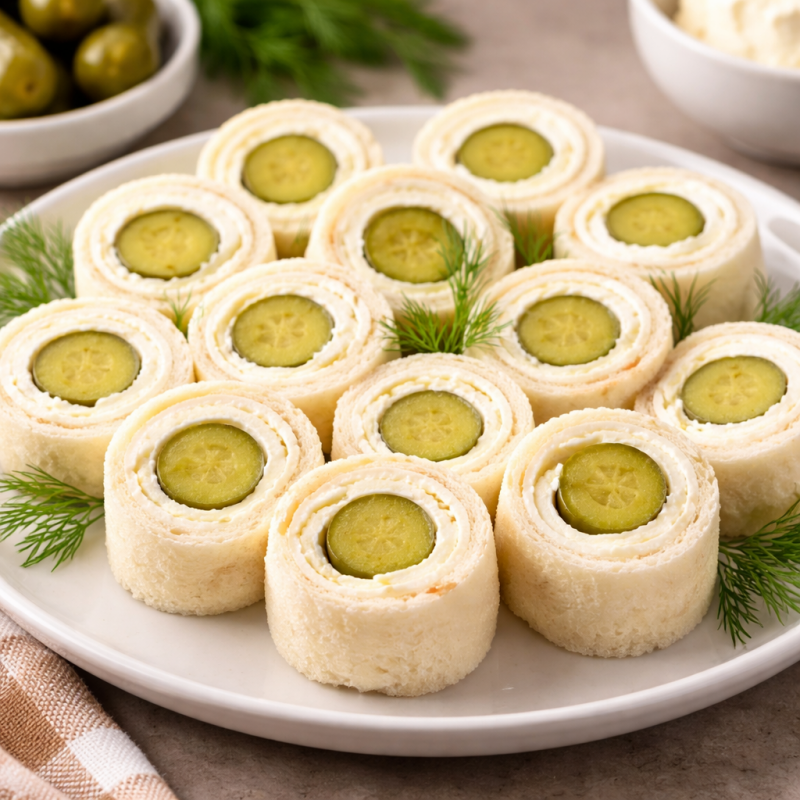 - Place two pickles on each slice side-by-side horizontally at the bottom of each slice and roll firmly into a log.